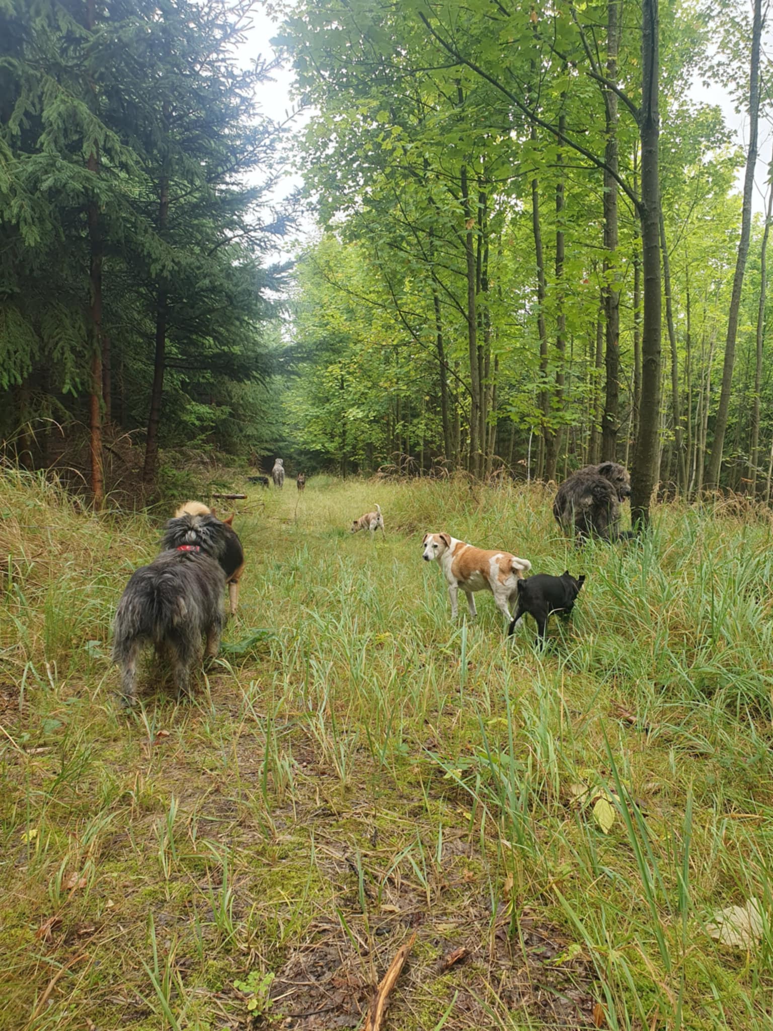 Velmi důležitou součástí práce s více pejsky je uvědomění si vlastního těla, vlastního pohybu v prostoru, a jeho vlivu na okolí. Hlubokým uvědoměním pro mě samotnou bylo, když jsem procítila smečku jako jednotný organismus, kdy na zachvění "motýlích křídel" v jedné skupině členů vidím téměř okamžitou reakci i u ostatních, třebaže se jedná jen o natočení uší, nebo změnu dechu.. Ke vnímání světa jako celku, jako prostoru okamžitých interakcí, mi pomáhají koně. Naučili mě vnímat sebe. Vnímat lidi dřív než přijdou, jak jsou naladěni. Vnímat rytmus chůze, dechu, postavení těla, napětí..